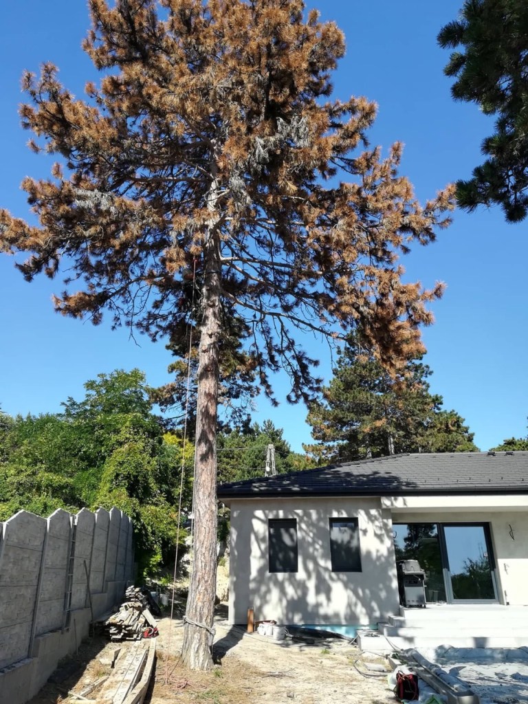 Szuvas, elszáradt fenyőfa kivágása Érd.
